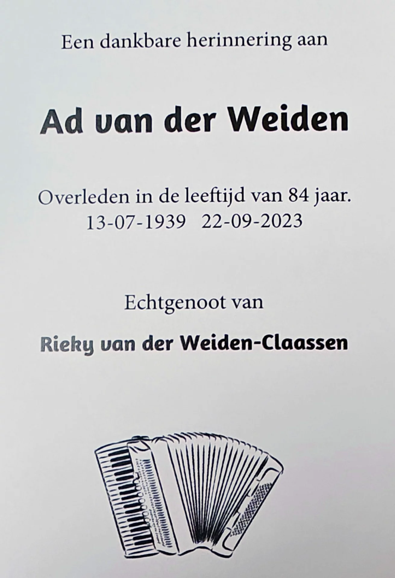 In memoriam, Ad van de Weiden.