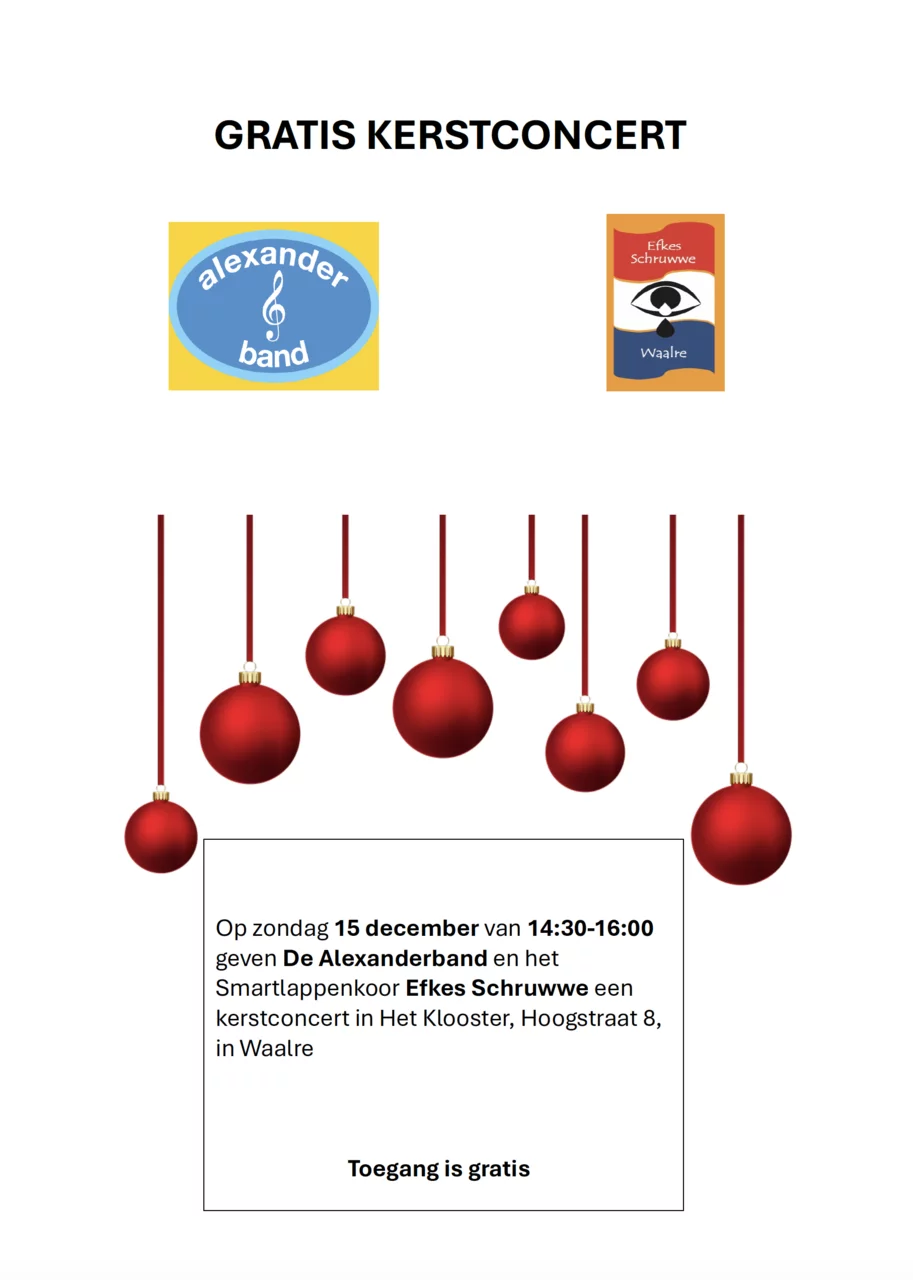Kerstconcert, 15 december in het klooster te Waalre, met de Alexanderband.